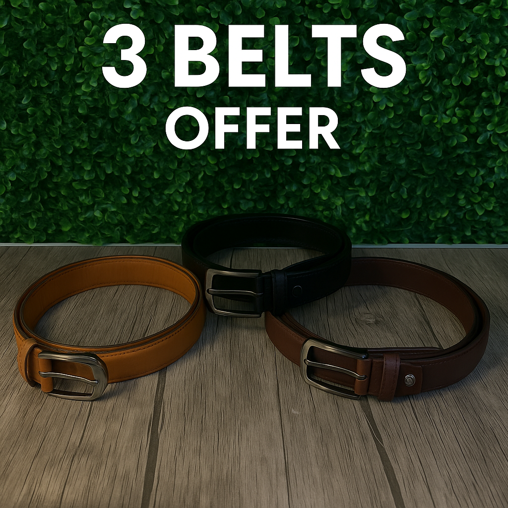 3 أحزمة كلاسيك جلد طبيعي وشين