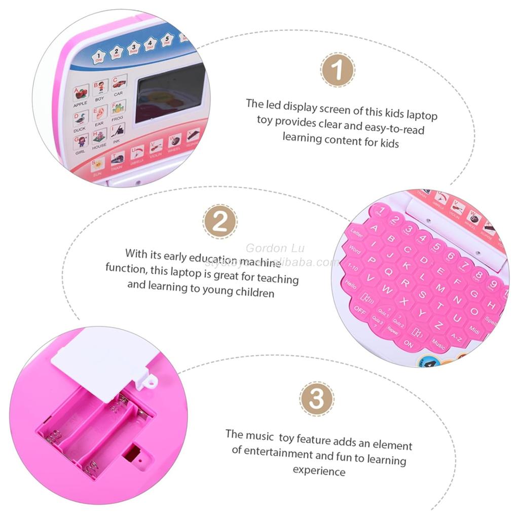 اللابتوب ده فيه كل حاجة الطفل محتاجها علشان يتعلم الحروف، الأرقام، الكلمات، وكمان الأغاني التعليمية بطريقة ممتعة وسهلة 👏