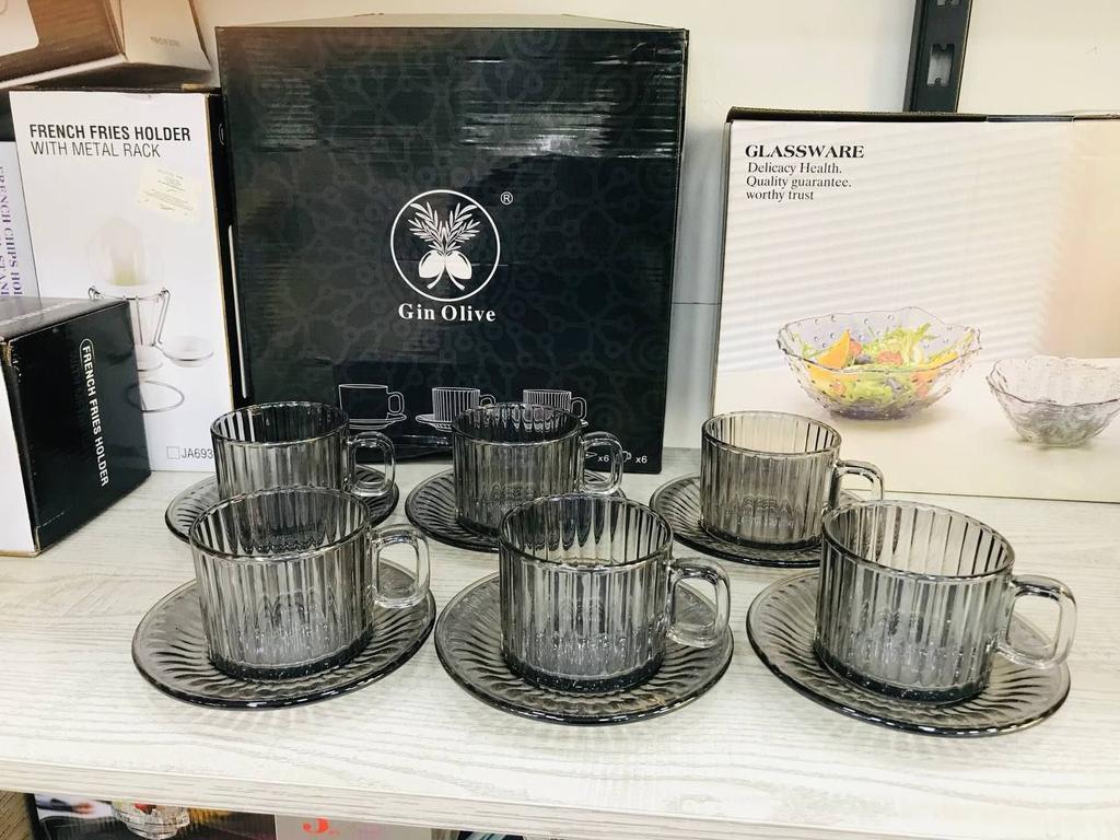 طقم كريستال الفاميه فنجان بالطبق 12 ق مستورد انقي نوع زجاج كريستال ٦ فنجان ٦طبق كواليتي عالي جدا خامه مستوره المقاس للشاي الكبير170 مل