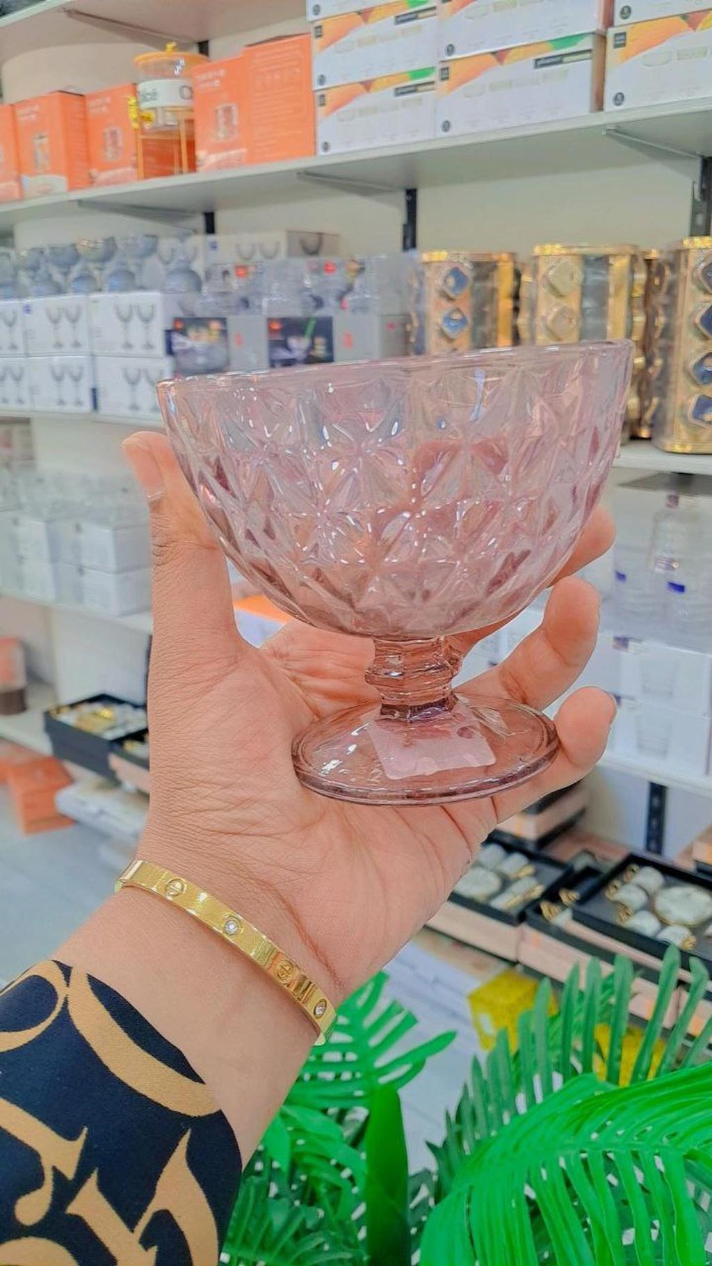طقم كاس جيلي مضلع الطقم 6 قطع مستورد كريستال تحفه مستورد عالي الجوده متعدد الاستخدامات ايس كريم وسلطه الفواكه رز بلبن مهلبيه ........ الصور ع الطبيعه