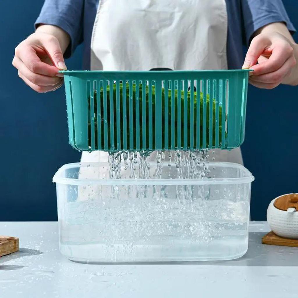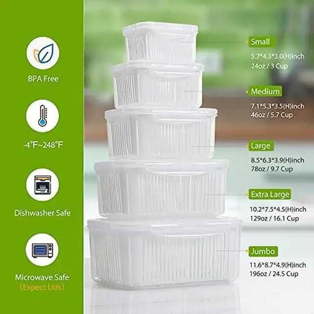 طقم ثلاجه محكم الغلق بيدخل الميكرويف وغساله الأطباق كل علبه بداخلها مصفي لتصفيه الخضروات ومانع للرطوبه