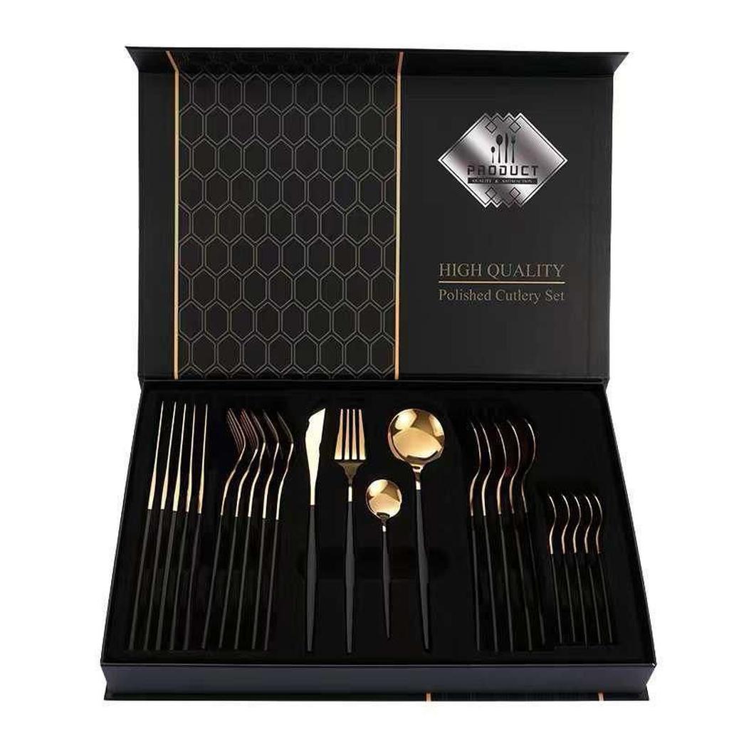 طقم معالق أستيل 24 قطعه خامه عاليه جدا جدا 304 إستيل علي المغناطيس متوفر ب جولد ف اسود