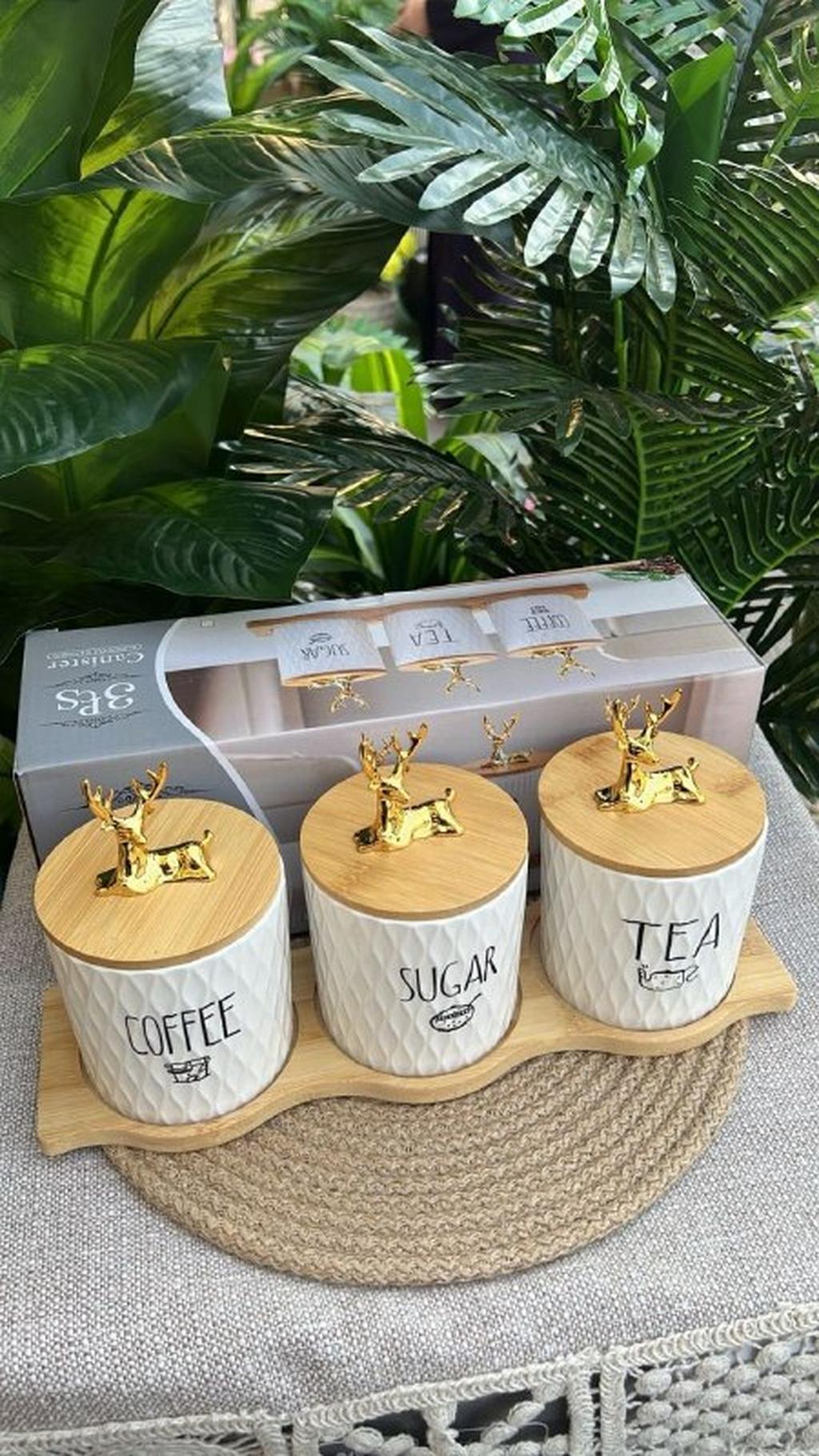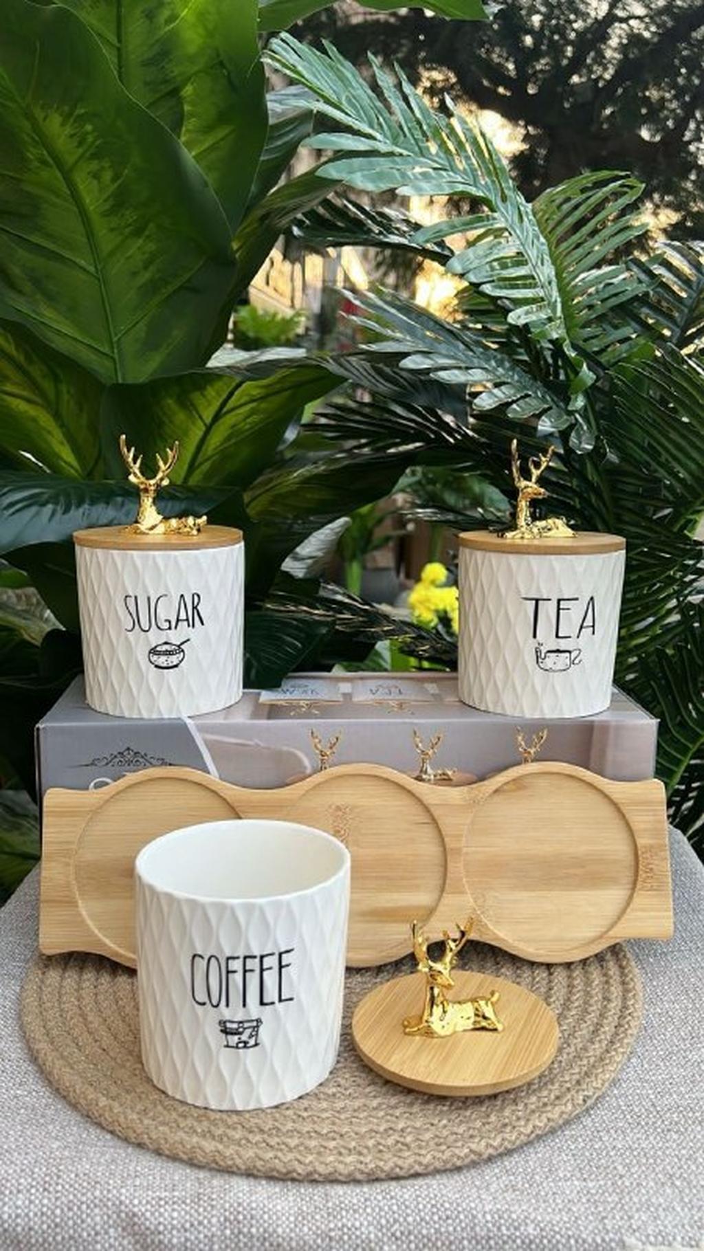 - مكتوب عليهم: Coffee – Sugar – Tea